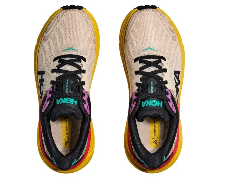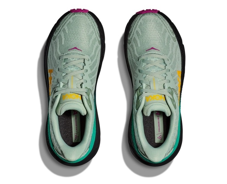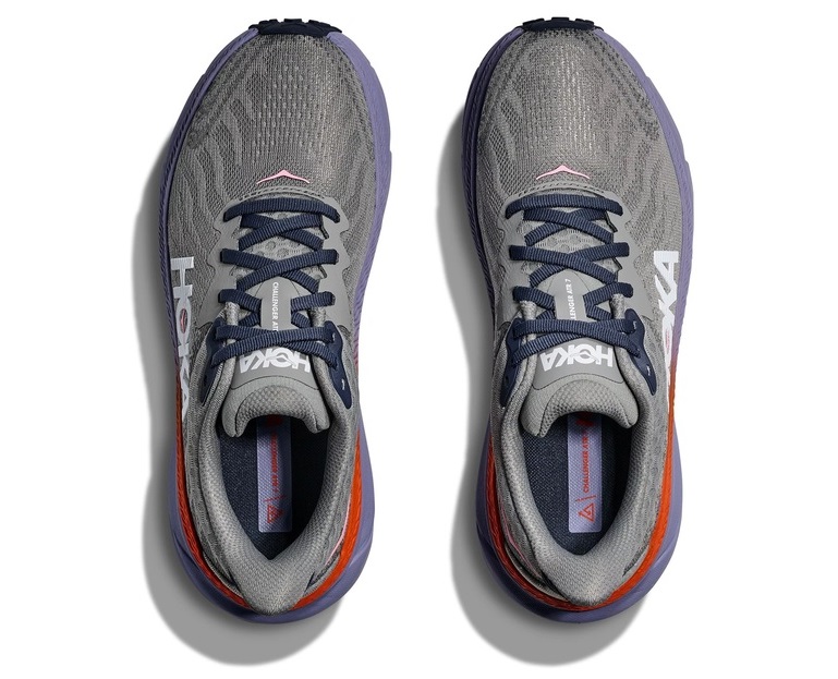 Можно сказать, что Challenger 7 — это универсальная версия самых популярных кроссовок HOKA для повседневных тренировок по бездорожью, а именно — Clifton 9. У этих моделей одинаковая межподошва из формованного пенного материала EVA, перепад пятка-носок и изогнутая форма межподошвы, также известная как мета-рокер, которая уменьшает ударную нагрузку при приземлении на пятку, увеличивает каденс и способствует более эффективному и прямому бегу. Всё это делает кроссовки более лёгкими. На этом сходства двух моделей заканчиваются.
